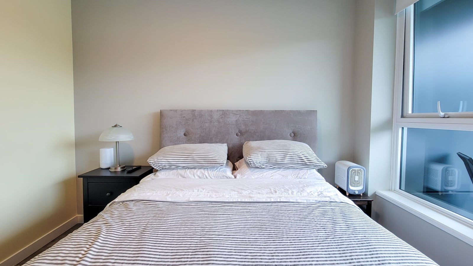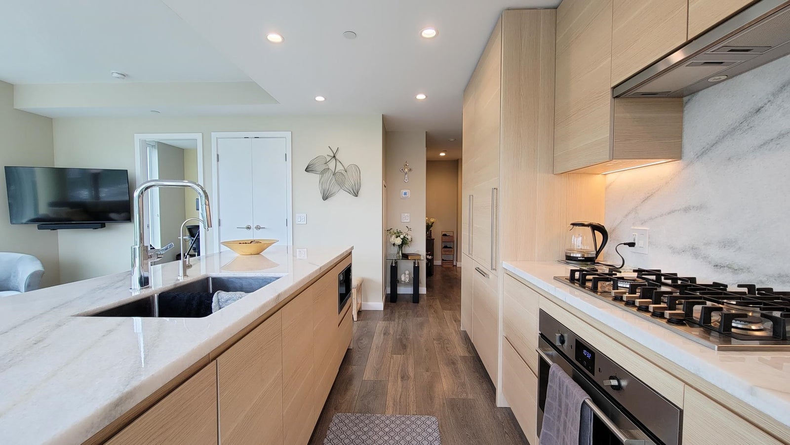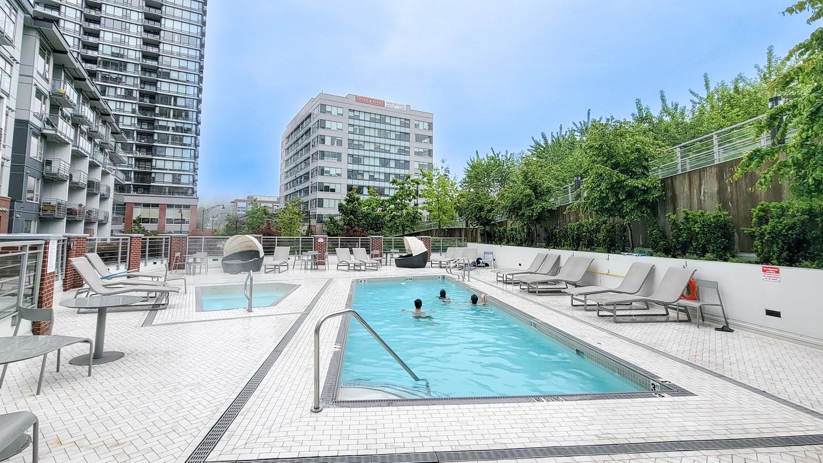 Welcome to The Grande in Suterbrook Village! Enjoy living, steps away from shops, restaurants with easy transit to downtown and the Lower Manland. This 2 bed CORNER suite has floor to ceiling windows, over height ceilings, a large chef kitchen with an expansive island, fully integrated European appliances package. Large open living/dining space with lovely S/E views taking in the Sunrise. Laminate flooring throughout the entire suite, A/C & Heating, walk-in closet in the master outfitted with custom millwork, heated floors in bathroom, all of the luxuries. Amenities include a fitness centre, pool & steam/sauna, theatre room, guest suite, kids area, outdoor play areas, BBQ and owners lounge. 1 parking, 1 storage. Call for your private showing. Pets Welcome.