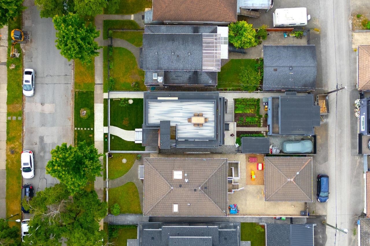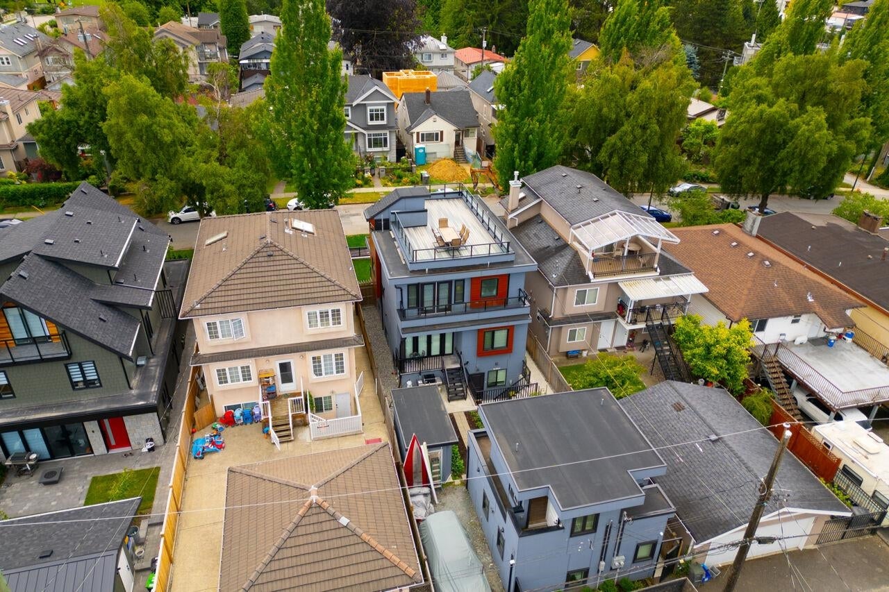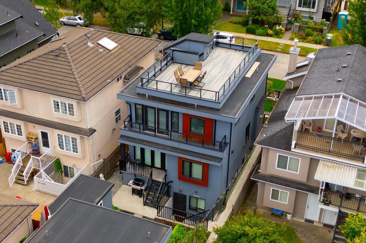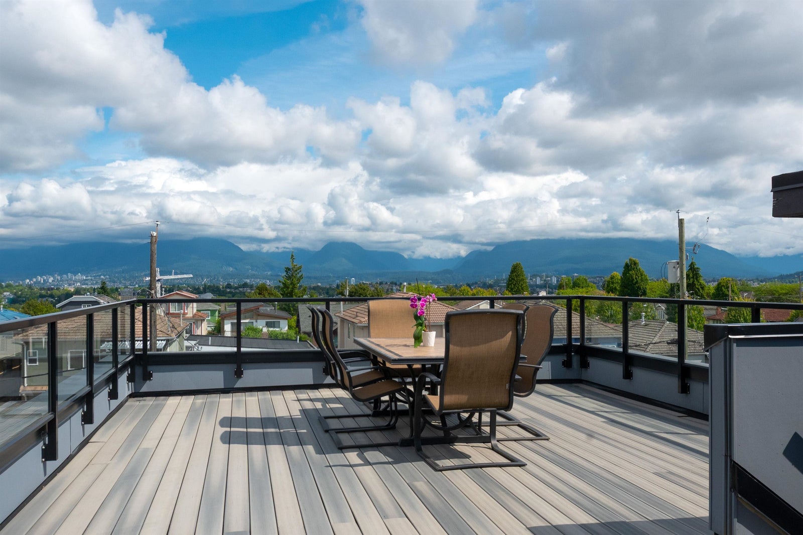 This modern home in Renfrew Heights offers an elegant blend of design and functionality. Three bedrooms, a theatre room in the main home with high-end finishes throughout. A sophisticated open-concept kitchen, 4 full luxurious bathrooms, and designer details make this home truly special. The second-floor master suite boasts bright mountain vistas and tranquility, complemented by two additional bedrooms ideal for family. A third-floor ROOFTOP DECK beckons for mountain gazing or starlit gatherings, soak in breathtaking views of snow-capped mountains—perfect for unwinding at sunrise or sunset. Additionally, a 2-bedroom legal suite and 1-bedroom, 1 bath laneway provide exceptional income potential. Open parking, A/C, radiant heated floors & remaining 2-5-10 warranty, this house has it all!