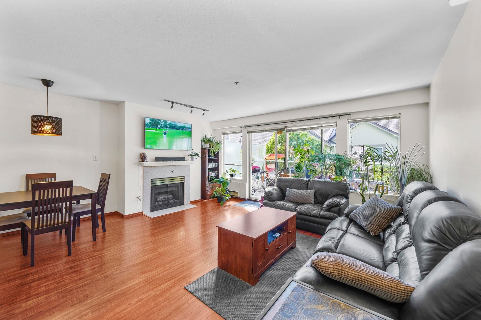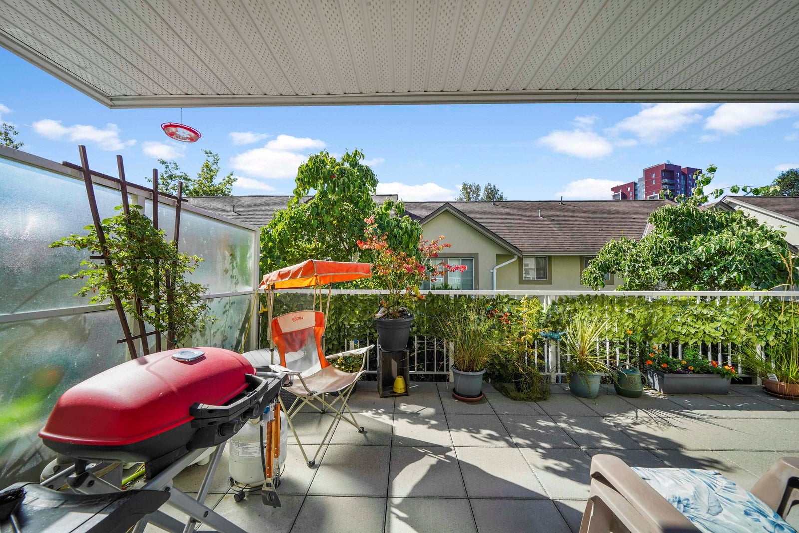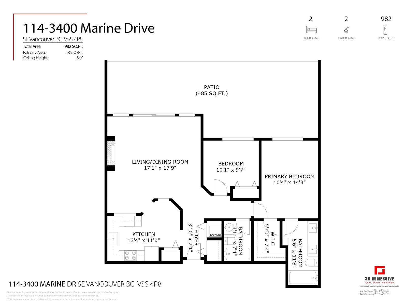 This Large, 2 bedroom & 2 FULL bathroom, is a south facing condo that has a MASSIVE 485 Sq Ft private patio, perfect for entertaining or relaxing in the ALL DAY sun. Ample-sized Primary bedroom w/ large, fully renovated, ensuite bathroom & a walk-in closet. Extremely quiet and tranquil area all within a short walk to trails, public transit, and the very popular River District. An incredibly well-run Strata, this PET FRIENDLY building comes with Parking, Storage and In Suite Laundry. The City of Vancouver prepaid lease expires in 2089. Please note that this is NOT a ground floor unit