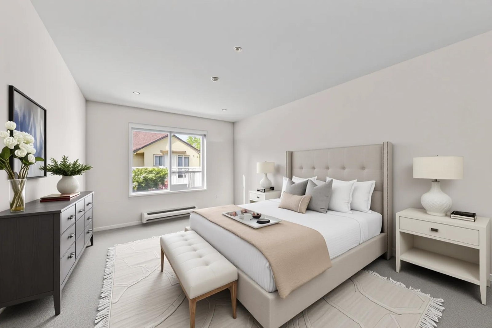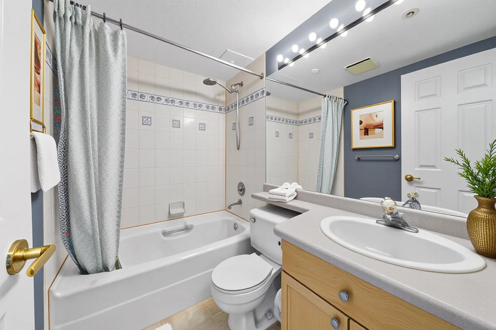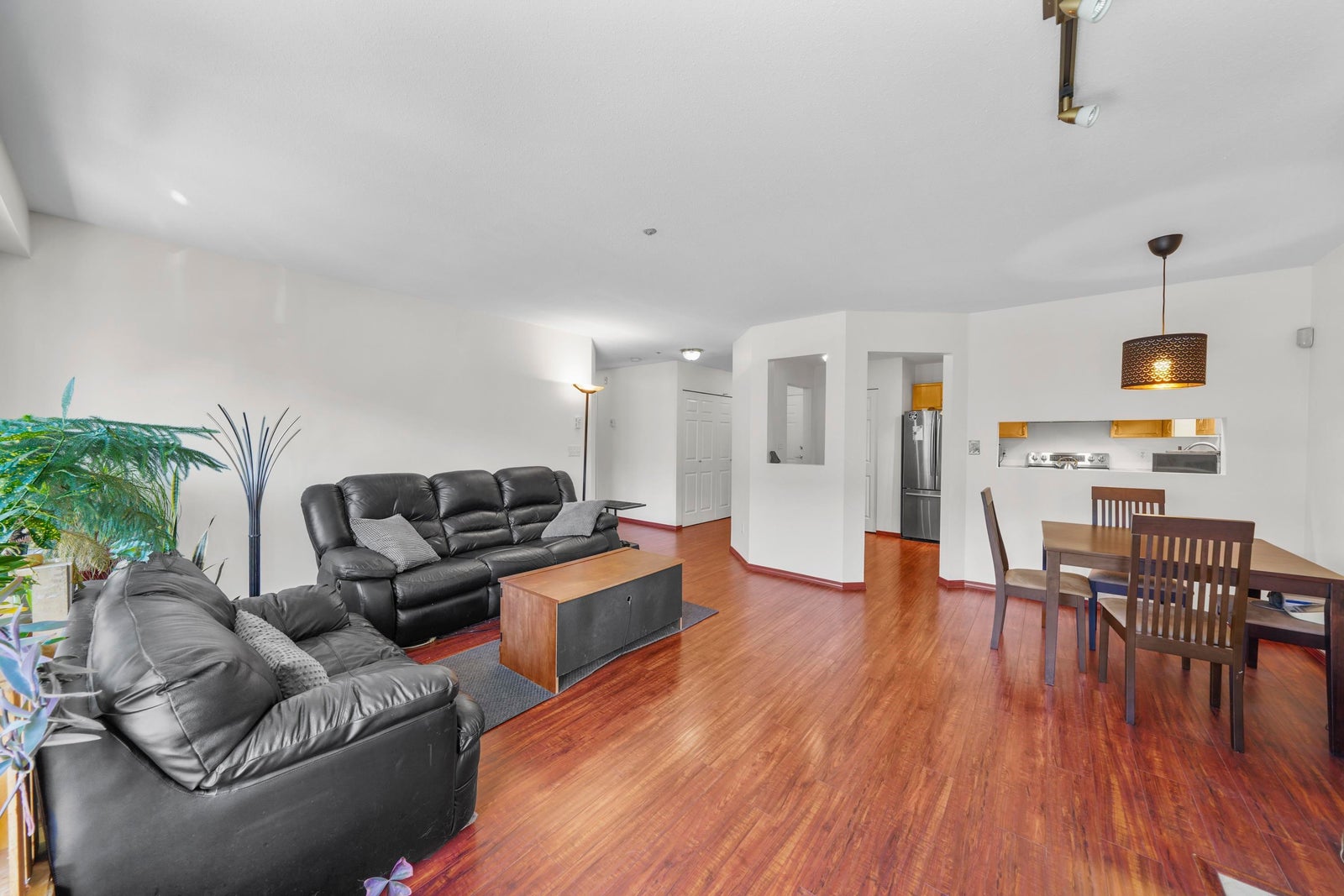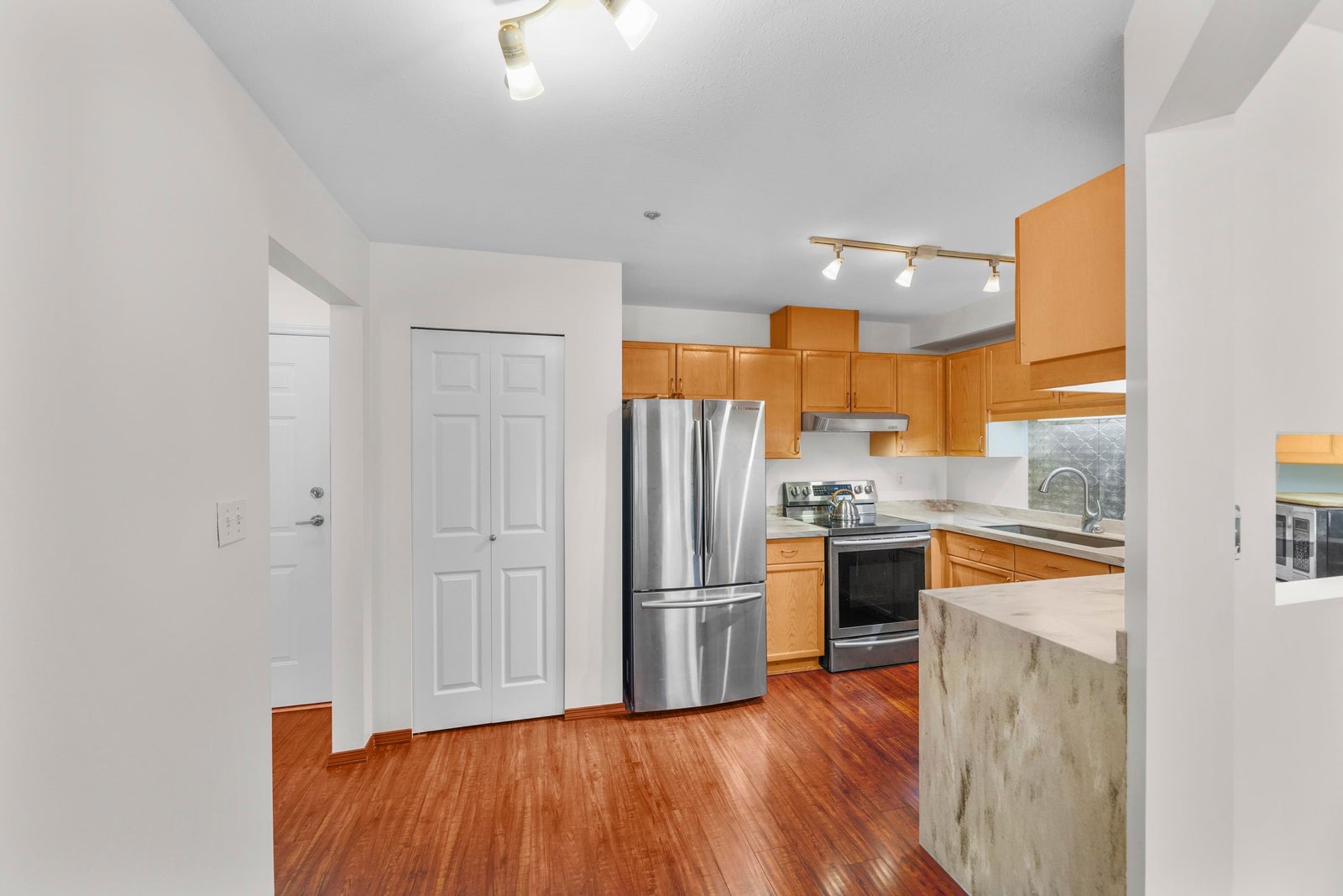 This Large, 2 bedroom & 2 FULL bathroom, is a south facing condo that has a MASSIVE 485 Sq Ft private patio, perfect for entertaining or relaxing in the ALL DAY sun. Ample-sized Primary bedroom w/ large, fully renovated, ensuite bathroom & a walk-in closet. Extremely quiet and tranquil area all within a short walk to trails, public transit, and the very popular River District. An incredibly well-run Strata, this PET FRIENDLY building comes with Parking, Storage and In Suite Laundry. The City of Vancouver prepaid lease expires in 2089. Please note that this is NOT a ground floor unit