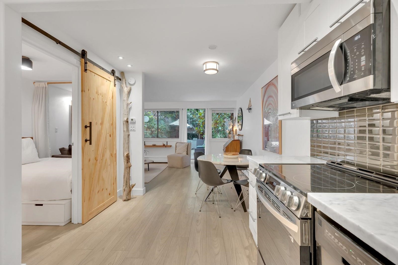 Private and Pristine Jr 1 Bedroom in the heart of Kitsilano. This fully renovated home has it's own private entrance from the amazing 420+ Sq Ft backyard which gives it the feeling of your very own townhome. The private, fenced in yard is South facing & gets all-day sun and is extremely peaceful so you can enjoy serene summer evenings entertaining or just relaxing. Open concept living with updated kitchen, all new flooring throughout and SS Appliances. Located on a quiet tree-lined street and no back alley or road behind the property. Steps to all of the neighbourhood amenities that Kits has to offer including West 4th & Broadway shops, the Beach and rapid transit! Pets welcome with incredibly low Strata Fees (includes heat & hot water) and proactive strata council!! Parking & Storage Incl